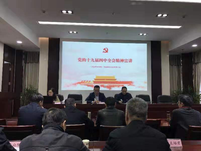 近日,集团举办学习贯彻党的十九届四中全会精神宣讲报告会,会议由集团党委书记、董事长周毅主持,市委宣讲团成员、市级机关工委书记潘国建作了宣讲报告,集团领导班子成员、下属企
