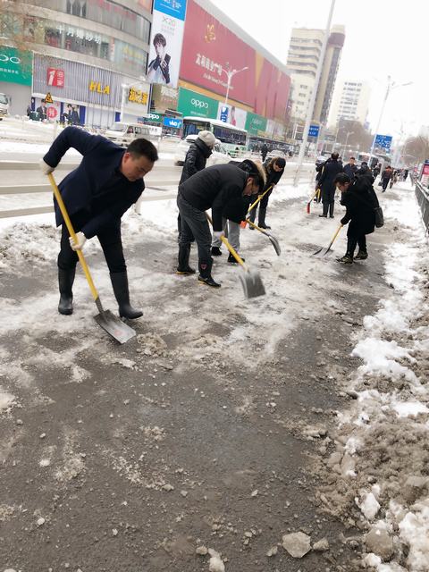 一天一夜的暴雪使得镇江城区路面湿滑、道路难行,为方便居民出行,消除安全隐患,1月26日早上七点,在集团董事长周毅的带领下,组织了150人的集团除雪防冻突击队来到商业城至电力路路段,积极投入到铲冰除雪活动中。